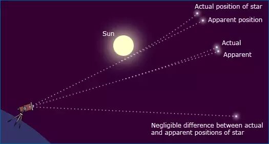 爱因斯坦的新引力理论吸引了当时在剑桥大学天文系的爱丁顿爵士。爱丁顿抓住了一个验证光线偏折的绝佳机会:发生在1919年5月29日的全日食。当全日食发生时,太阳耀眼的光芒就会被遮挡住,为我们观测太阳背景恒星制造了机会。如果爱因斯坦的理论正确,那么恒星会发生偏折,也就是说遥远恒星的位置与视位置会有偏差。