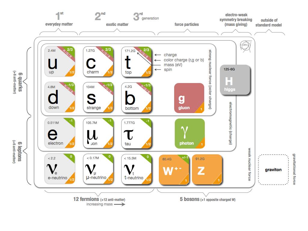 所以,在多数情况下,当我们提起物理学中的标准模型时,脑中总是浮现出如下表格:
