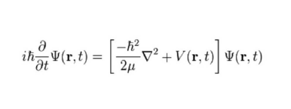 它描述了如何从一个粒子的动能(运动)及其势能(所经历的相互作用)中,计算出该粒子的波函数(像烛台形状符号Psi)的变化。