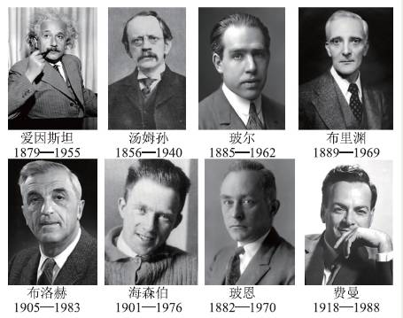 在寻求常规金属超导理论的征程上,物理学家最初走出来的,正是这么一条“形不似神似”的道路。超导体所展现出的零电阻、完全抗磁性等奇特行为充满了迷人之处,不仅在应用上蕴含着巨大的潜力,在物理机制研究上也富有挑战性。为了解释超导现象,许多顶尖的物理学家都前赴后继发明了各种自己的“语言”,真可谓“长江后浪推前浪,前浪死在沙滩上”。令人惊讶的是,“扑死”在超导理论沙滩上的物理学家,包括鼎鼎大名的爱因斯坦(Albert Einstein)、汤姆孙(Joseph John Thomson)、玻尔(Niels Bohr)、布里渊(Léon Brillouin)、布洛赫(Felix Bloch)、海森伯(Werner Heisenberg)、玻恩(Max Born)、费曼(Richard Feynman)等(图2)。这些人里面,爱因斯坦的成就自不待说,汤姆孙以发现电子而闻名,玻尔、海森伯、玻恩、费曼都是量子论的创始人物,布里渊和布洛赫作为“老布家”建立了电子在固体中运动的基础理论(参见本系列文章第5 篇:神奇八卦阵),这些人显然对微观电子是如何运动的已“了如指掌”,可谓代表了同时期固体物理的顶级理论水平。出乎意料的是,这些差不多个个都拿过诺贝尔物理学奖的“最强大脑”在挑战超导问题的时候,都无一例外遭遇了共同结局——失败!爱因斯坦曾因超导理论的失败十分懊悔地说道:“自然界总对理论家冷酷无情,对一个新理论,她从来不肯定,最多说可能是对的,绝大多数情况下是直接否定。最终,几乎每个新理论都会被否决掉。”面对超导问题,使尽了洪荒之力的“科学顽童”费曼,也不无郁闷地说道:“天知道这些年(1950 —1966)我都经历了些什么,好像我在努力解决超导问题,然而最终我还是失败了……”。