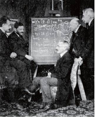 图2 (从左到右)爱因斯坦、埃伦费斯特、朗之万、昂尼斯、外斯在昂尼斯位于荷兰莱顿的家中(来自英文维基百科)