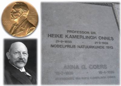 图9 昂尼斯获得1913 年诺贝尔物理学奖,右图为他的墓碑(引自英文维基百科及诺贝尔奖官网)