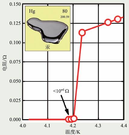 1911 年4 月8 日,荷兰莱顿实验室的工程师Gerrit Flim、实验员Gilles Holst 和Cornelius Dorsman,如往常一样早7 点就来到实验室准备测试汞在低温下的电阻,同时用之前测量过的金作为参照样品。11点20 的时候,实验室主任卡末林·昂尼斯过来察看液氦制冷情况。在中午时分,他们已经获得了足够的液氦并测量了它的介电常数,确认低温液氦并不导电[8]。Gilles Holst和Cornelius Dorsman 在实验室的另一个房间记录汞和金的电阻值,在4.3 K的时候,这两个材料都是一个有限的数值(0.1 Ω左右)。随着进一步蒸发液氦制冷到了3 K,下午4 点时分,他们再一次测量汞和金的电阻值,发现汞的电阻几乎测不到了,而金的电阻则仍然存在。昂尼斯并没有因为他的预言可能被验证而欣喜若狂,他十分冷静地分析了实验结果。因为汞和金的结果相反,是不是测量过程出了问题?他们首先怀疑测量电路是否短路了,于是把U形管容器换成W型容器再一次重复了实验,依然发现汞的电阻几乎为零。接着他们又怀疑温度控制是否不太稳定,实验一直持续到深夜。并在随后的数天里,Gilles Holst 等详细测了汞的电阻随温度的变化,一个伟大的发现在不经意间被发现:在液氦沸点4.2 K以下的时候,汞的电阻确实突然降到了零,也即超出了仪器的测量精度范围[5]。4 月底,昂尼斯在一次学术会议上初步报道了他们团队的实验结果,随后在5 月和10 月他们再次以更高精度的测量仪器重复了实验,确认汞的电阻在4.2 K 以下降到了10-5 Ω 以下。1911 年11 月,昂尼斯发表了题为《汞的电阻突然迅速消失》的论文,对物理学界报道了这一重大发现,并将该现象命名为“超导”,意指“超级导电”之意(图6)(昂尼斯起初命名为supraconduction,后英文表述为superconductivity)。随后他们对金属铅和锡也进行了测量,发现他们各自在6 K 和4 K 也存在超导现象。发生超导现象时对应的温度又叫做超导临界温度,简称超导温度[9]。