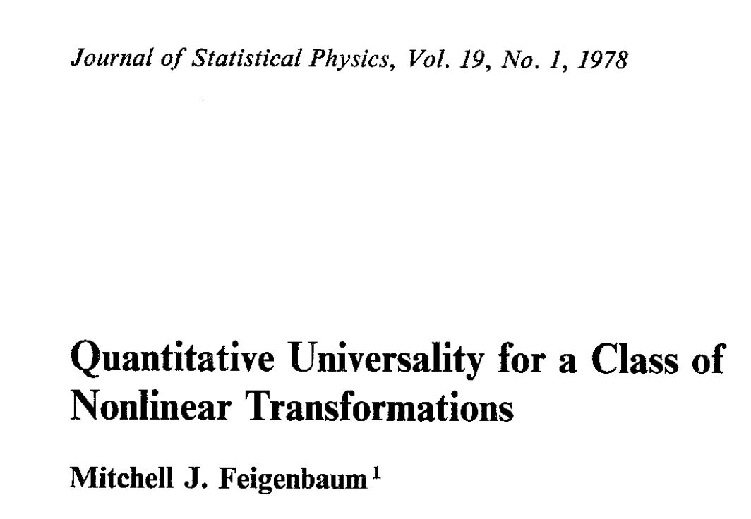 终于,在1978年的《统计物理学》期刊上,费根鲍姆发表了他的重要发现。