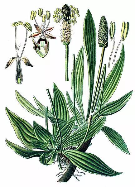 在数学中,圆的黄金分割的张角为137.5°(更准确的值为137.50776°),被称为“黄金角”的数值。许多植物萌生的叶片、枝头或花瓣,也都是按“黄金比率”分布的。我们从上往下看,不难注意到这样一种很有规律的现象:它们把水平面360°角分为大约222.5°和137.5°(两者的比例大约是“黄金比率”0.618);也就是说,任意两相邻的叶片、枝头或花瓣都沿着这两个角度伸展。车前草是一种常见的小草,它就是一位了不起的“几何学家”。车前草轮生的叶片间的夹角恰好是137.5°,按照黄金角的度数排列的,叶片能巧妙镶嵌但不互相覆盖,这种完美的排列方式确保了每片叶子都能够最大限度地获取阳光,有效地提高植物光合作用的效果。