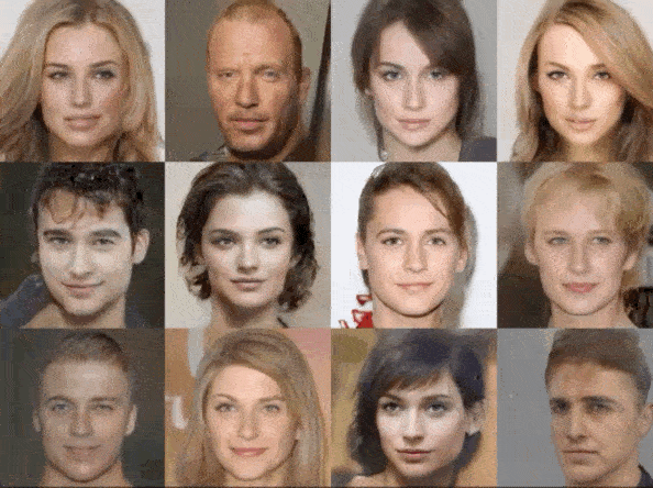 来看一个简单的例子显示计算效果。我们用很多人脸图片,学习了人脸图片的流形,在流形上均匀采样。采样的每一个采样点就是一张三维的人脸,一张人脸图片。流形中的任意一个曲线段就是一个变换过程,从一张脸渐变成另外一张脸。我们不知道这些人是不是存在过,也不知道他们未来是不是会存在,但是我们人眼分辨不出来这些人脸是真的还是假的。这个实验用的还是刚才讲的蒙日-安培方程和科夫斯基的问题。