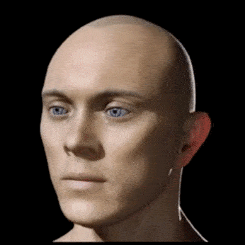 在这边我们找了一个演员,把他的一些标准表情给数字化,然后做了下面一个非常小的一个电影片段。这边的整个场景是假的,是用Maya(三维动画)做的。人也是假的,表情也是假的。所以我们相信虚拟演员这个技术,未来可以在VR、AR中很大地普及。