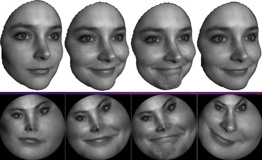 我们把动态的三维人脸,通过黎曼映照映到二维的圆盘上,然后用刚才的方法可以建立帧与帧之间的一一映射。