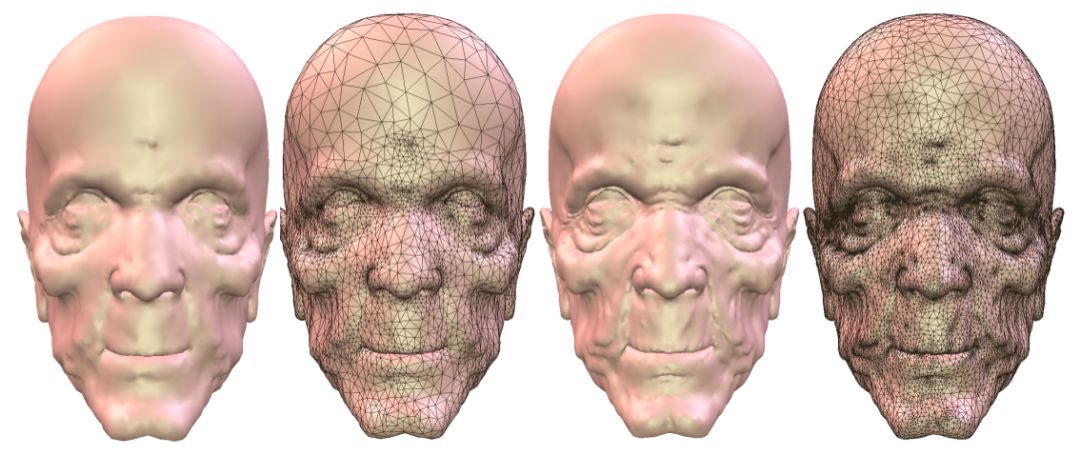 在虚拟现实、增强现实中,数据压缩是一个非常关键的问题。比如我们为了表达一张老人的脸,饱经沧桑、满布皱纹,需要大量的几何信息。如果要通过无线网络来传递这个信息,或者是本身硬件性能比较差,渲染速度就非常慢。如何来压缩这个复杂的几何信息是一个非常关键的问题。