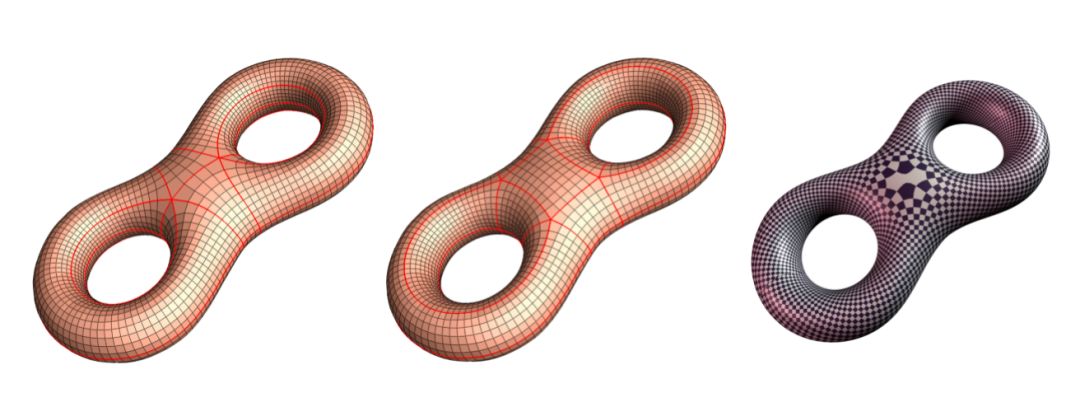 这个结构在计算力学中是非常有用的。比如说我们设计了一个,汽车的发动机。制造一个发动机非常昂贵,在制造之前,我们需要对它进行模拟仿真。模拟仿真的意思就是说在这个发动机上要解一些偏微分方程来计算它的力学特性、热力学特性、电磁特性。为了保证计算的精度,我们需要在这个曲面上进行四边形网格剖分,使剖分尽量地均匀,奇异点尽量地少。