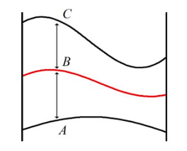 首先来介绍一下平均边界的概念,可以将它理解为两条给定曲线的中线,从垂直方向看,作一直线与三条曲线分别交于A、B、C,则线段AB与线段BC等长。并且稍作计算可以发现,平均边界的长度不大于两条给定曲线长度的平均值,只有当两条曲线一样时才能取等号。