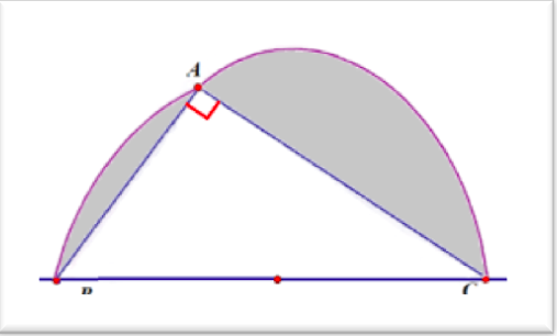 考虑上半部分曲线 D1 围成的图形A1,运用反证法,假设A1不是半圆。将D1与分割线的交点记为B与C,由直角三角形的斜边中线定理可知,半圆的内接三角形为直角三角形,而A1不是半圆,则D1上存在一点A,与点B、C相连使得∠A不是直角。接着,移动三角形底边的端点 B、C,并保持BA、CA的长度不变,使∠A变为直角,这时,保持阴影部分面积不变,而三角形△ABC面积增加,从而A1的面积也增加,而曲线 D1 的长度未变,因此在周长不变的情况下得到了面积更大的图形,与假设矛盾,因此上半部分为半圆,从而圆就是面积最大的图形。