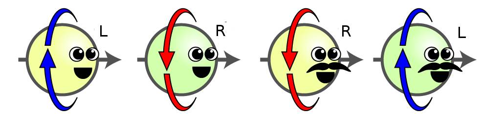 的四分量狄拉克费米子,会有四个内部状态:正粒子态“+”、反粒子态“-”、自旋平行于速度的右手态“R”和自旋反平行于速度的左手态“L”。所以合起来这四个内部状态可以由“R+”、“L+”、“R-”、“L-”,来描写。