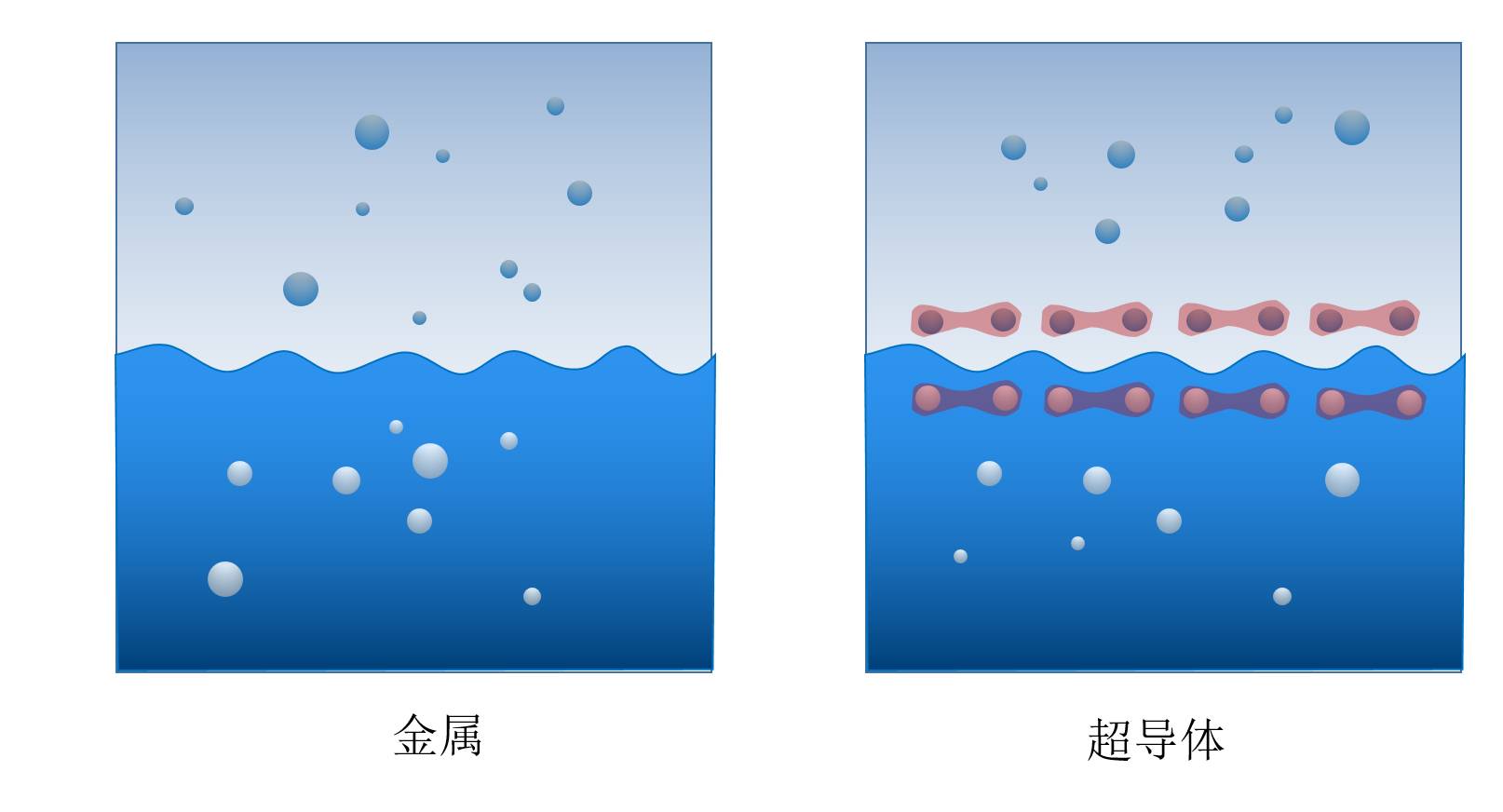 明白了什么是反粒子,我们继续说马约拉纳费米子。从费米-狄拉克海的图像中我们很难理解为什么会有一种粒子是它自己的反粒子。这就好像说海平面以上的雨滴和海平面以下的气泡是同一种东西。当一场雨落在海面的时候,总会有跟雨滴等量的气泡沿着镜像对称的轨迹向上走,在海平面上跟雨滴湮没掉,从而保持海平面的位置一直不变。任何观测雨滴的人都无法判断它是空气中下落的雨滴,还是海水中上升的气泡……这听起来简直是天方夜谭,但我们的世界总是比我们最离奇的想象还要离奇。虽然我们迄今仍然不确定马约拉纳的预言是否是正确的(他预言中微子是一种马约拉纳费米子),但在凝聚态物理中,我们已经可以很确信地说,马约拉纳费米子是存在的,它就存在于一大类材料——超导体中。超导体发现于1911年,直到1957年才被Bardeen、Cooper和Schrieffer的BCS理论成功解释。BCS理论的核心概念是库伯对(Cooper pair),粗略地说就是两个电子配成对一起在材料中运动。因为两个电子放在一起看就变成了玻色子,而玻色子喜欢很“团结”地聚集到同一个状态上,结果是体系中大量的电子配成对集体行动,使得电流可以完全无阻尼地传播。大量玻色子聚集到同一个状态上的相称为玻色-爱因斯坦凝聚,所以超导体可以用一句话来描述,就是库伯对的玻色-爱因斯坦凝聚态。