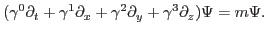 是粒子的质量。由这个狄拉克方程所描写的粒子总是费米子,总有2个内部自旋态,正反粒子也总不相同。这种粒子也被叫做四分量狄拉克费米子(由四个波函数描写)。一个速度为