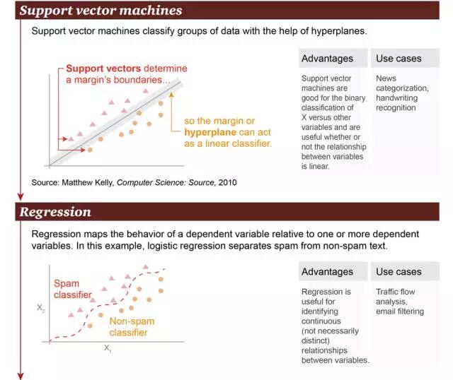 你应该使用哪种机器学习算法?这在很大程度上依赖于可用数据的性质和数量以及每一个特定用例中你的训练目标。不要使用最复杂的算法,除非其结果值得付出昂贵的开销和资源。这里给出了一些最常见的算法,按使用简单程度排序。