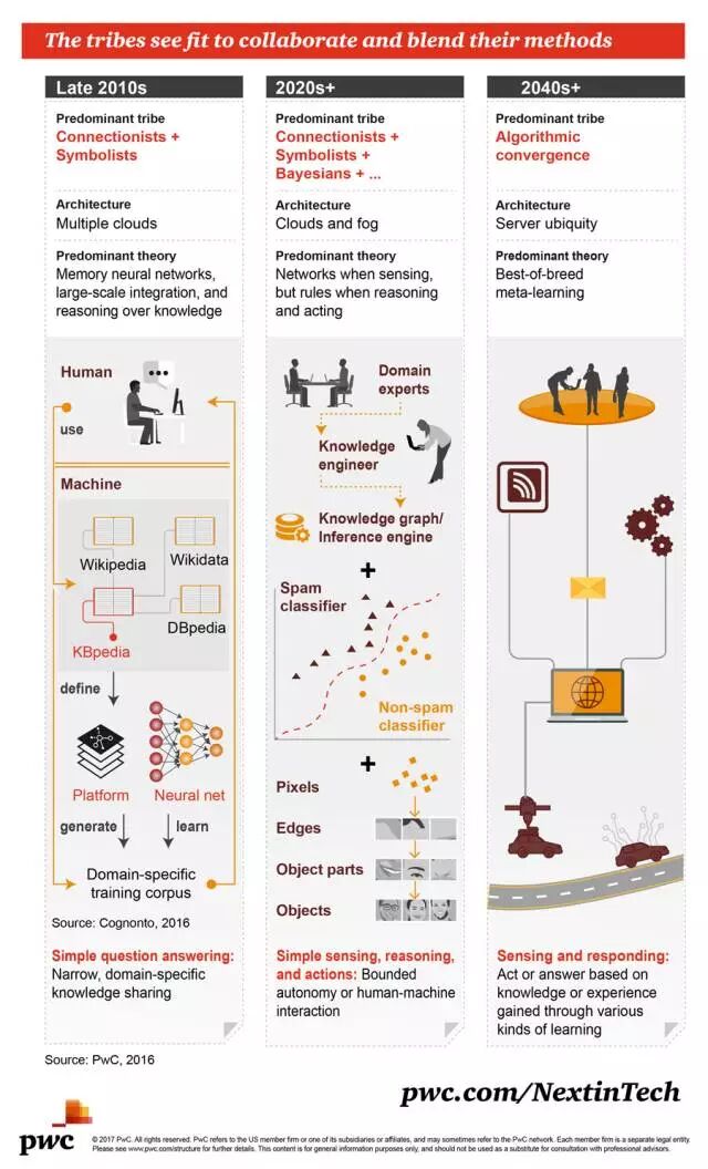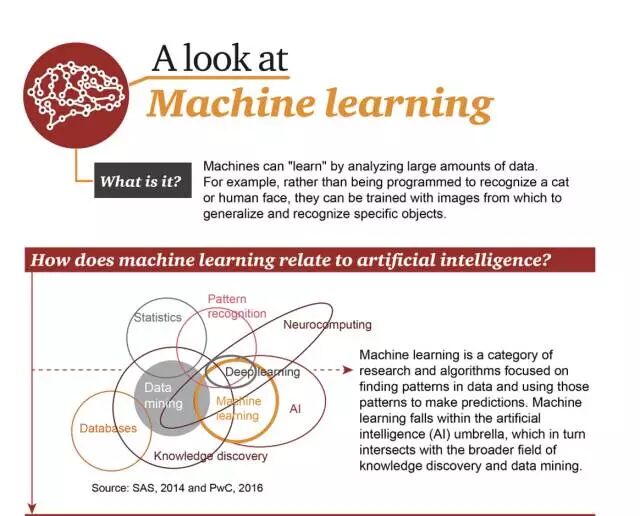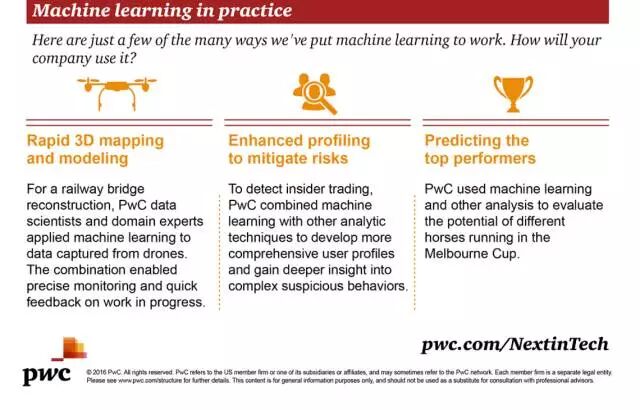 机器学习正在进步,我们似乎正在不断接近我们心中的人工智能目标。语音识别、图像检测、机器翻译、风格迁移等技术已经在我们的实际生活中开始得到了应用,但机器学习的发展仍还在继续,甚至被认为有可能彻底改变人类文明的发展方向乃至人类自身。但你了解现在正在发生的这场变革吗?四大会计师事务所之一的普华永道(PwC)近日发布了多份解读机器学习基础的图表,其中介绍了机器学习的基本概念、原理、历史、未来趋势和一些常见的算法。为便于读者阅读,机器之心对这些图表进行了编译和拆分,分三大部分对这些内容进行了呈现,其中也加入了一些扩展链接,希望能帮助你进一步扩展阅读。