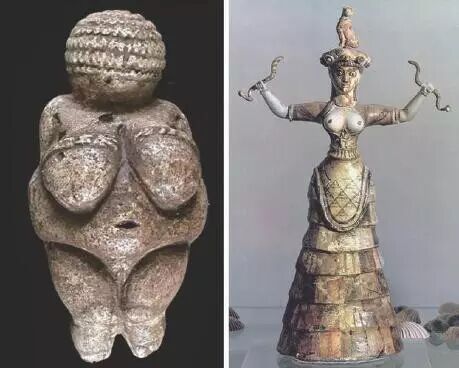 图1 沃尔道夫的维纳斯和米诺斯的蛇女神(来自arthistoryresources.net)