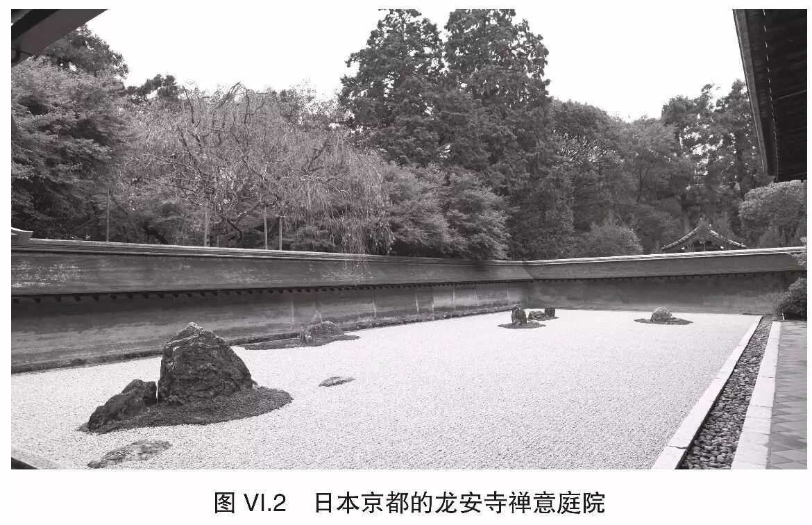 这些古老而精致的庭院,如京都的龙安寺庭院(图VI.2),都加入了时间的维度。在某种意义上,比花园高出几个台阶的木质平台A就代表了时间:来此观赏花园的一代代游客留下了他们的思考、梦想和经历。庭院饱含着所有这些虚幻的故事、所有潜在的可能。在几个世纪内,庭院已经远远超出了铺设精美的砂砾与山石。如同量子真空一般……