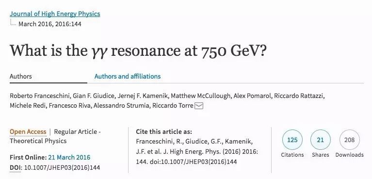 但由于ATLAS和CMS两个实验都独立发现了这一信号——750千兆电子伏特(GeV)能量处比预期略高的双光子信号,物理学家希望此信号属实,因为这就代表着一种潜在的新粒子。LHC宣布这一信号后,已经出现了数百篇试图解释这个潜在新粒子的理论物理学论文,其中有些被引次数颇高。