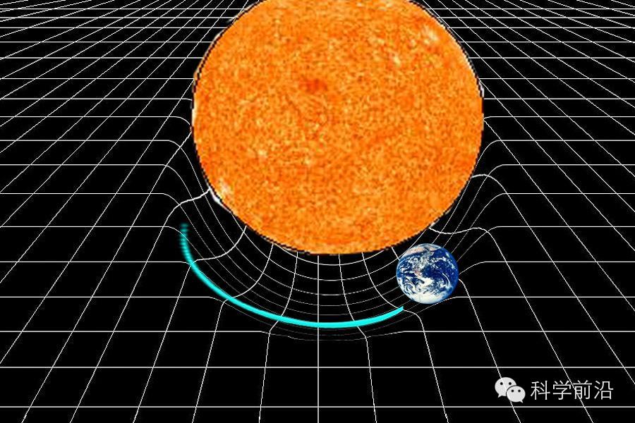 爱因斯坦的相对论认为地球绕太阳公转的机制其实来自时空扭曲,太阳周围的时空发生了扭曲,而地球则沿着测地线公转,这也是空间中最短的路径。