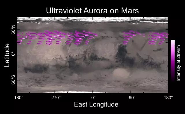 2014 年 12 月观测到的紫外极光分布图。(科罗拉多大学)