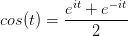 我们刚才讲过,e^(it)可以理解为一条逆时针旋转的螺旋线,那么e^(-it)则可以理解为一条顺时针旋转的螺旋线。而 cos (t)则是这两条旋转方向不同的螺旋线叠加的一半,因为这两条螺旋线的虚数部分相互抵消掉了!