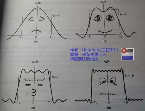 如果我说我能用前面说的正弦曲线波叠加出一个带 90 度角的矩形波来,你会相信吗?你不会,就像当年的我一样。但是看看下图: