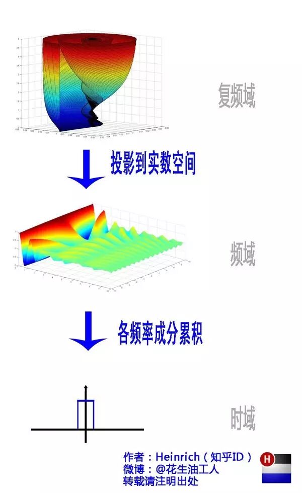 六、指数形式的傅里叶变换有了欧拉公式的帮助,我们便知道:正弦波的叠加,也可以理解为螺旋线的叠加在实数空间的投影。而螺旋线的叠加如果用一个形象的栗子来理解是什么呢?