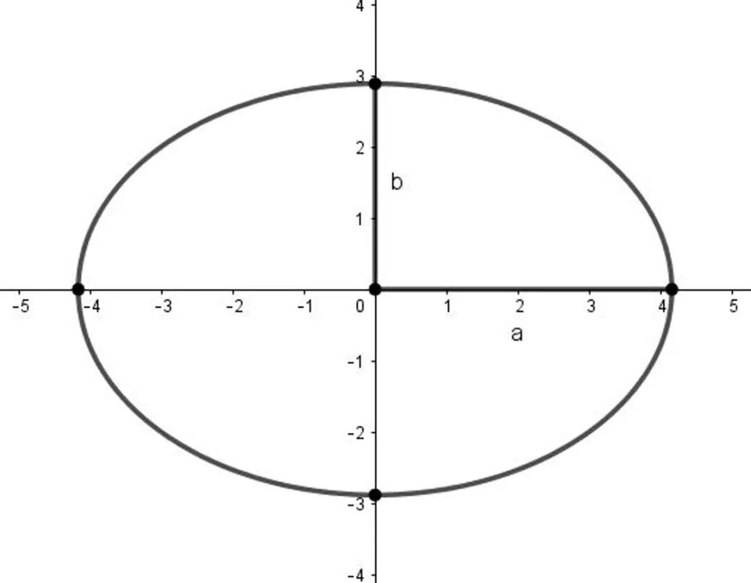 事情并没有到此结束。在坐标系上以0为圆心、半径为1画圆,其方程为x²+y² = 1。椭圆的表现与此不同,因为对于大多数椭圆,从中心到曲线的距离不是恒定的,而是在两个数值(图中的a和b)之间变化。