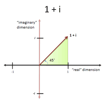 同时,上图也不知不觉地将数从一维的实数域拓展到了二维的复数域,即实数与虚数的组合。或者说:复数=实部+i·虚部。例如,一个复数Z 的实部为1,虚部也为1,则可以得到复数Z =1+i。