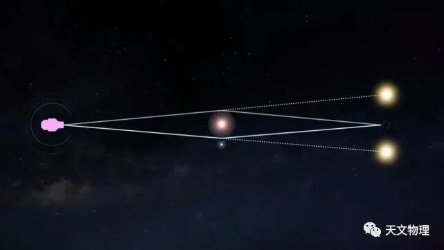 光以直线传播,但如果时空发生弯曲(如这发生在像恒星这样的大质量物体附近)光就会沿着曲线运动。在任何时候,当两颗恒星从我们的有利位置近距离排列时,来自较远恒星的光线在穿过较近恒星的扭曲时空时会发生弯曲。这一现象是爱因斯坦广义相对论的预言之一,1919年英国物理学家亚瑟·爱丁顿爵士在一次日全食中证实了这一点。