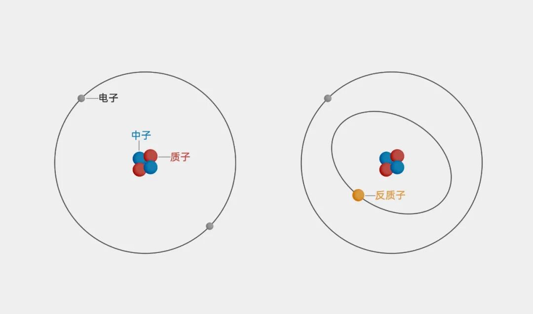 在新研究中,原子中的一个电子被反质子替代,形成了奇异的混合物质-反物质氦原子。| 图片参考来源:Nature