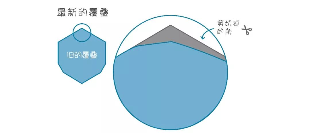 假如你找到了一个万有覆叠,又要怎样才能知道这就是面积最小的形状呢?你可以继续回到寻找覆叠的那一步,找一些边边角角,这里剪一点,那里剪一点。