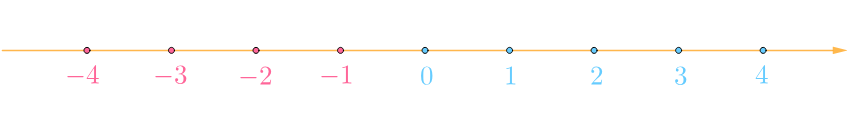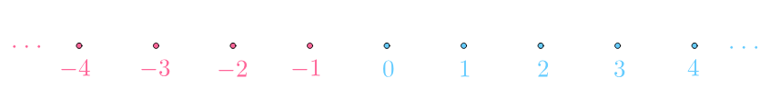 很显然上面的图像是不对称的,哪怕出于美学考虑,人们都有冲动把左边补齐,增加负数,这样就得到了整数域:
