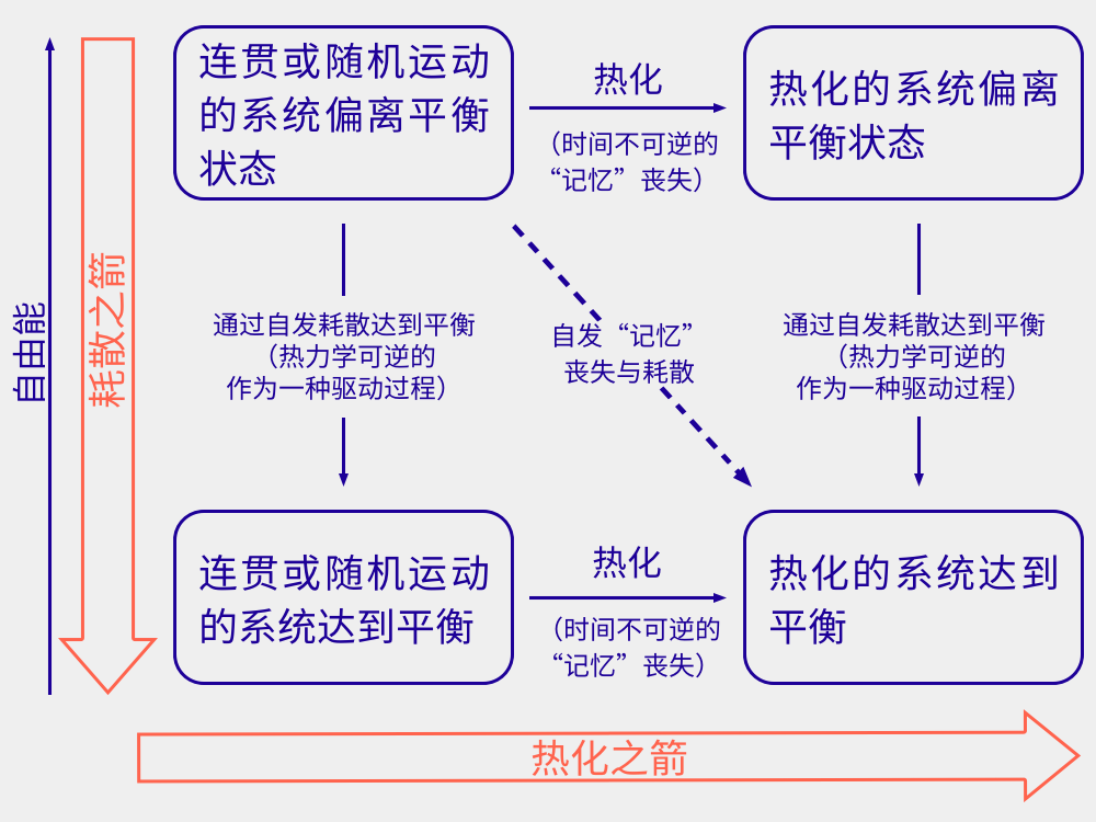 两种类型的可逆性有着本质不同,时间之箭可以被分成达到热平衡状态的耗散之箭,以及导致时间可逆性丧失的热化之箭。|参考来源:Roduner & Krüger (2022)