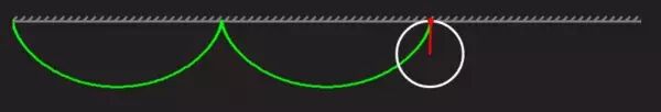 想象你的车跑在这样形状的一个坡上,轱辘就是那个黑点,那它运动速度最快的区间就是在这条摆线的 0≤θ≤π 的范围里,从垂直下降到回归水平位置的这段路径上(见下图)。