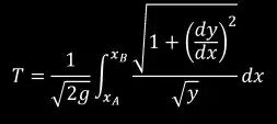 计算的基本思路是「能量守恒」。坠落的珠子把势能变成动能。如果我们把这条弯曲的路径长度记做s,每一段无线小的路径记做ds,得: