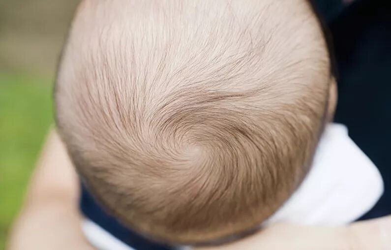 头发中间那个可爱的漩涡,按数学的说法,就是一个“奇点”,这个婴儿的头发似乎无法决定该往哪个方向生长的一个点。它后面的头发向左而前面的头发向右生长。在这点附近,头发有的向前有的向后。使得这个发型在该处“奇异”的是一个突然而且不连续变化的变量(这个变量就是头发的方向)。
