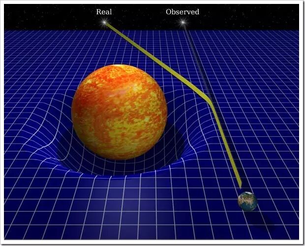爱因斯坦发觉他的方程可以用来解释时空和物质的分布是互相影响的,不像牛顿力学里面认为的时空是固定的,时间和空间是没有关系的。他发觉时空不停在改变。发现这些方程可以用来解释光线偏折。在此过程中,爱因斯坦做出了一个基础性的概念突破:不仅仅物质的存在产生重力从而弯曲时空纤维,而且重力直接来源于时空的曲率。过了不到两年,天文观察证实了这个发现。1918年,爱因斯坦因此一举成名。这是一个划时代的观念上的大突破。