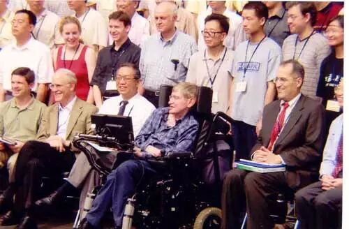 2002年北京国际弦论会议:前排左起斯特罗明格,格罗斯,丘成桐,霍金,威滕