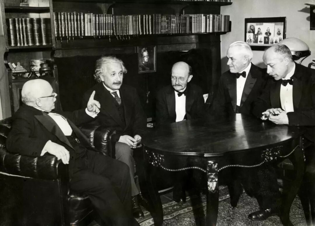 ○ 1931年,五位诺贝尔得主齐聚一堂,左二和中间两位分别是爱因斯坦和普朗克。| 图片来源:Public Domain