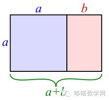 为了开始我们对方程 的分析,首先把“x”用“a”代替,把“y”用“b”代替,这样方程就变成了ab + b² = a²;然后将它变形为(a+b)/a = a/b;接下来将这个方程表示为几何形式,我们可以画一个a×(a+b)的矩形,它里面包含了一个a×a的正方形和一个a×b的矩形,如下图所示。
