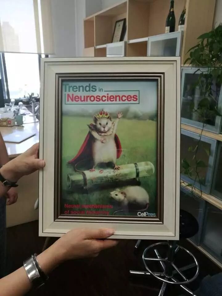 2015年,胡海岚教授应邀《细胞》杂志子刊《神经科学动态》杂志写综述,当时的封面就是胡海岚实验室的主角:老鼠。通讯员周炜/摄