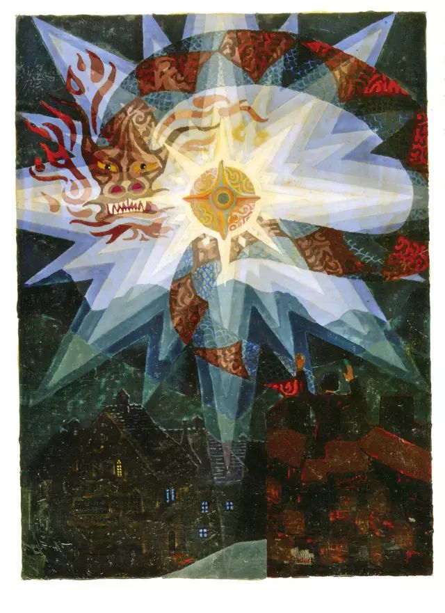 “1928年,这是戒备森严的金色城堡,在我画好这幅图的时候,理查德·威尔海姆从法兰克福给我寄来一部中国有千年历史的金色城堡文本,这是凡人肉体的胚胎。笼罩在隐秘中的天主教与新教的教堂,一个极长时期的结束。