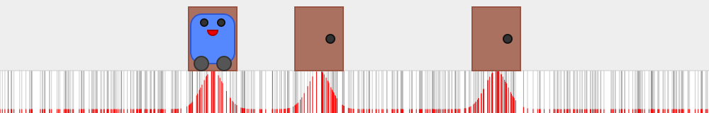 在这个一维空间上,机器人通过前期的探索,已经知道这个空间一共有3个外观都是一样的门,并记录了门口的样子。