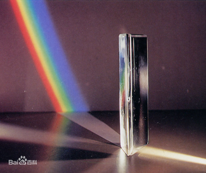 牛顿 1665 年毕业于剑桥大学三一学院,当时大家都信奉亚里士多德的说法,即太阳光是一种纯色的白光。但彩色是如何出现的呢?人们无法解释雨后的彩虹的色彩。牛顿把一面三棱镜放在一束阳光下,当阳光穿过这种均匀的透明介质后,由不同波长组成的阳光发生了不同角度的折射,出现了红、橙、黄、绿、青、蓝、紫的基础色带。这是因为同一种介质对不同色光的折射率不同。他又用 7 种颜色组成的圆盘高速旋转,合成了白色的光,使人们对阳光有了较深入的认识。