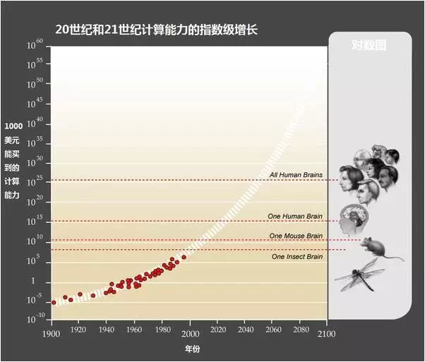 Kurzweil认为考虑电脑的发展程度的标杆是看1000美元能买到多少cps,当1000美元能买到人脑级别的1亿亿运算能力的时候,强人工智能可能就是生活的一部分了。
