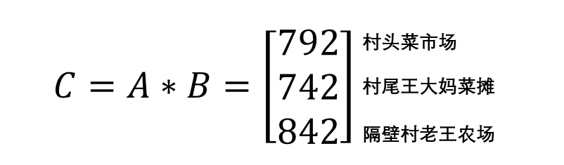 那我们就可以得到三个地方的价格(价格矩阵C):