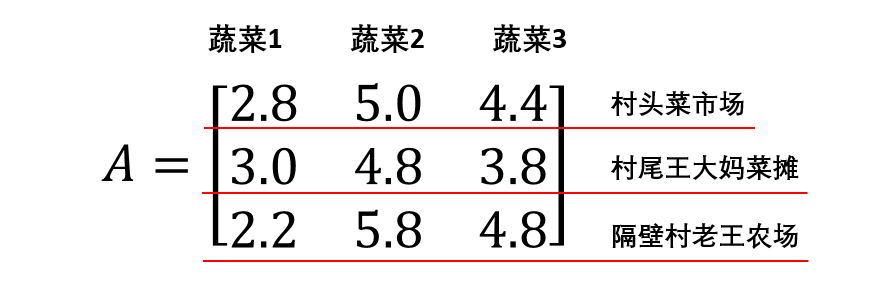 我记得上一次你还跟我说过三种蔬菜的需求量,那我们将需求量做成需求矩阵B